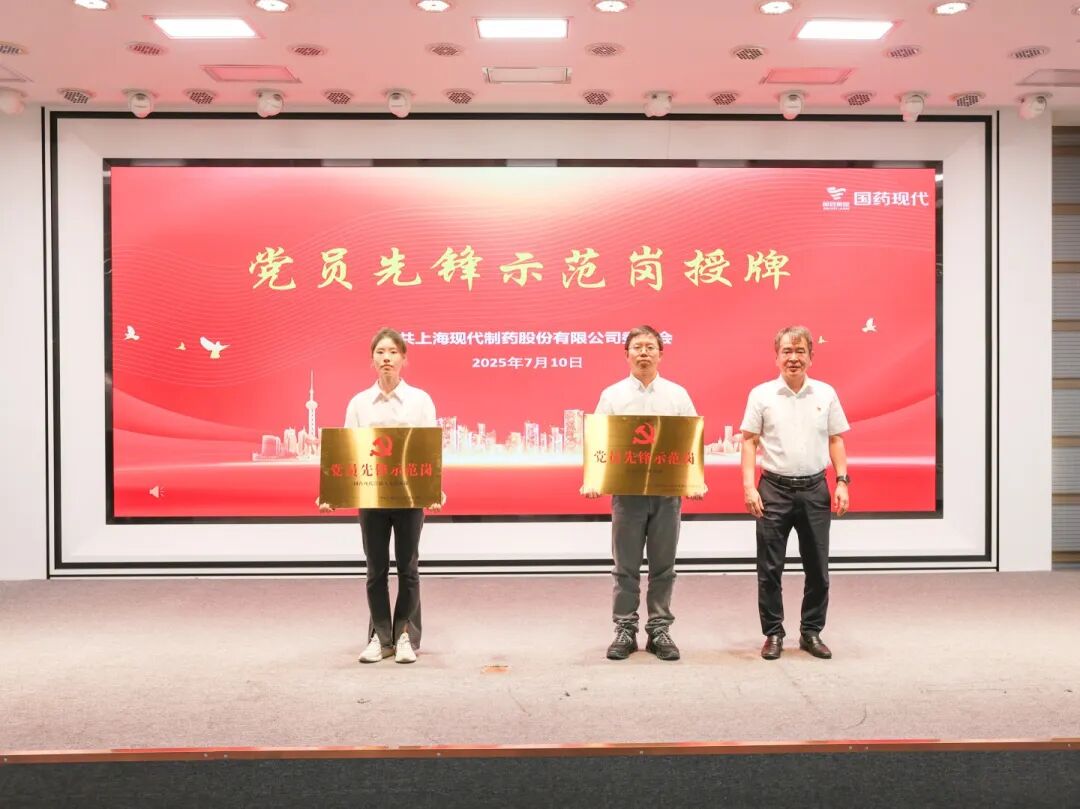 活动现场,国药现代党委副书记、总裁刘勇代表公司党委宣读授牌决定,公司领导班子成员为获评国药现代“党员先锋示范岗”的21个集体和3名个人进行授牌。