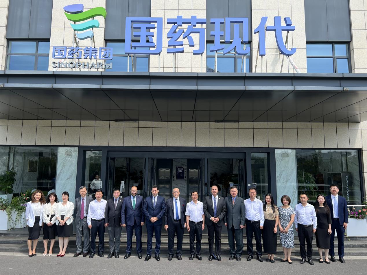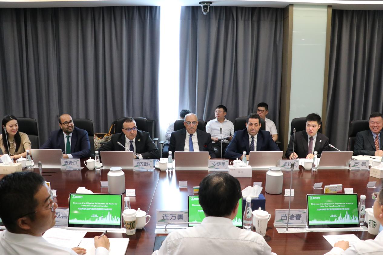 7月14日,摩洛哥王国亚洲与大洋洲事务司司长安萨里等一行莅临国药现代调研考察,并与国药现代总裁连万勇等企业主要负责人就医药产业发展、经贸合作、共建“一带一路”等进行了深入友好的交流。