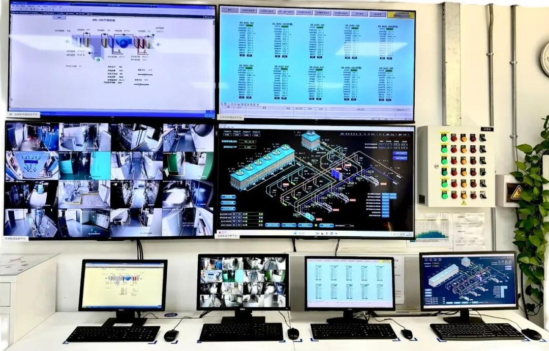 团队围绕能源转型等难点问题组建党员攻坚专班,持续优化绿电使用,绿电使用占比达46%,危废减量化120余吨。深化能源循环利用,利用余热制备蒸汽24t/d,中水回用实现喷淋及冷却塔补水。强化技术革新,更新冷却塔专利布水器及冬季供冷装置,实现水电双节能。持续推进数智化平台建设,推动高效机房及中央空调自控系统上线运行,达成全流程智能管控,年度综合COP达6.0。